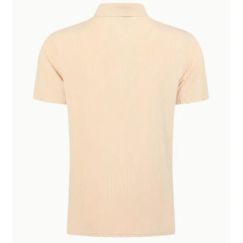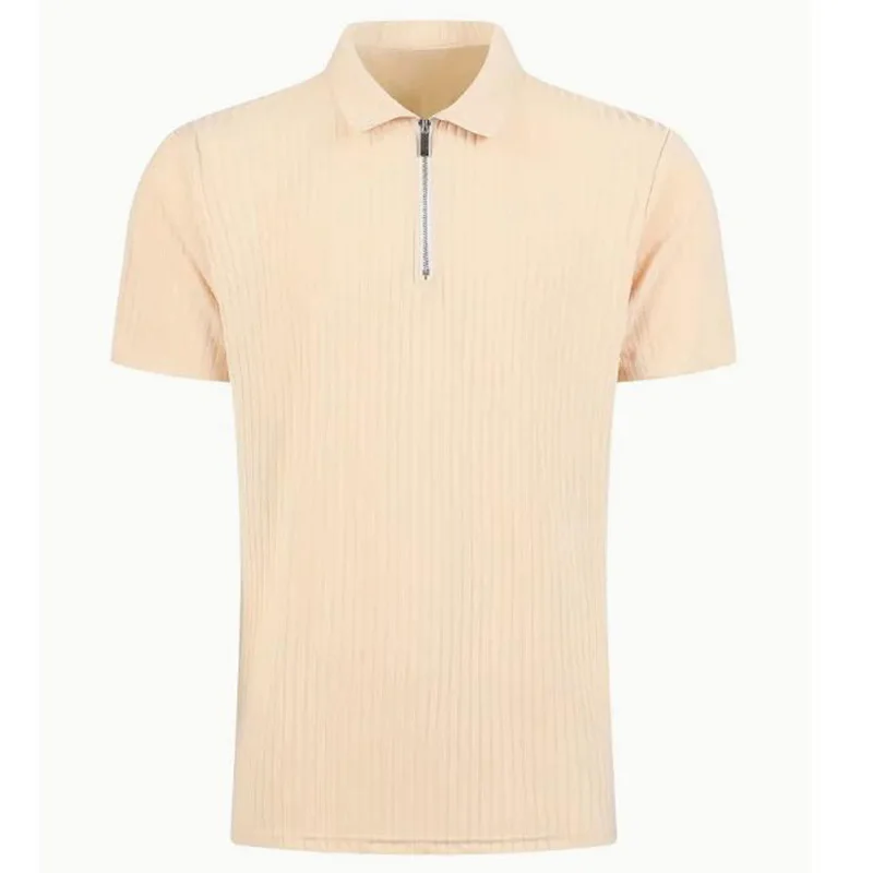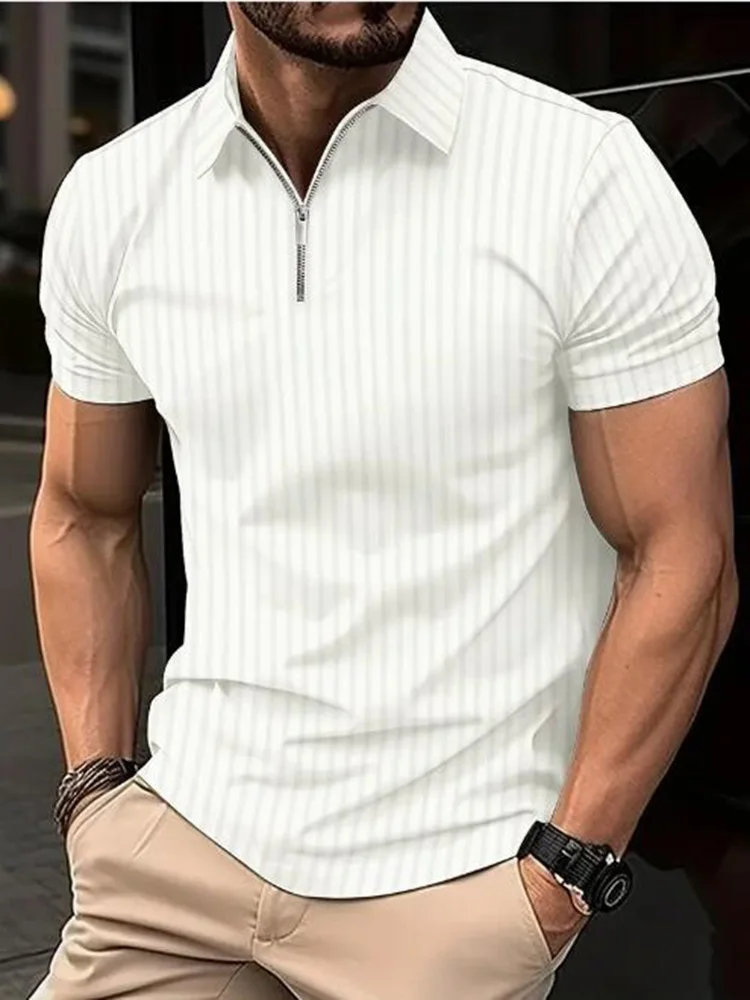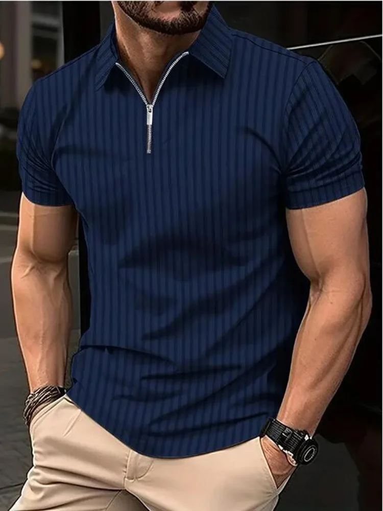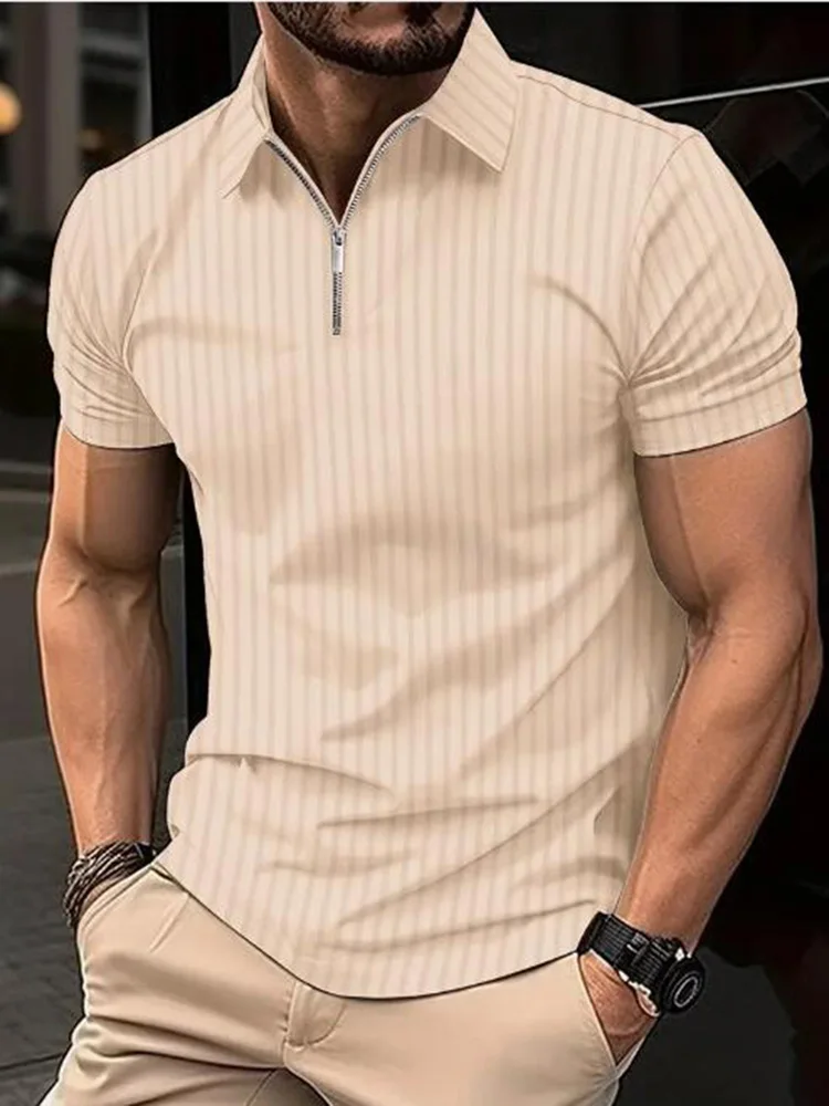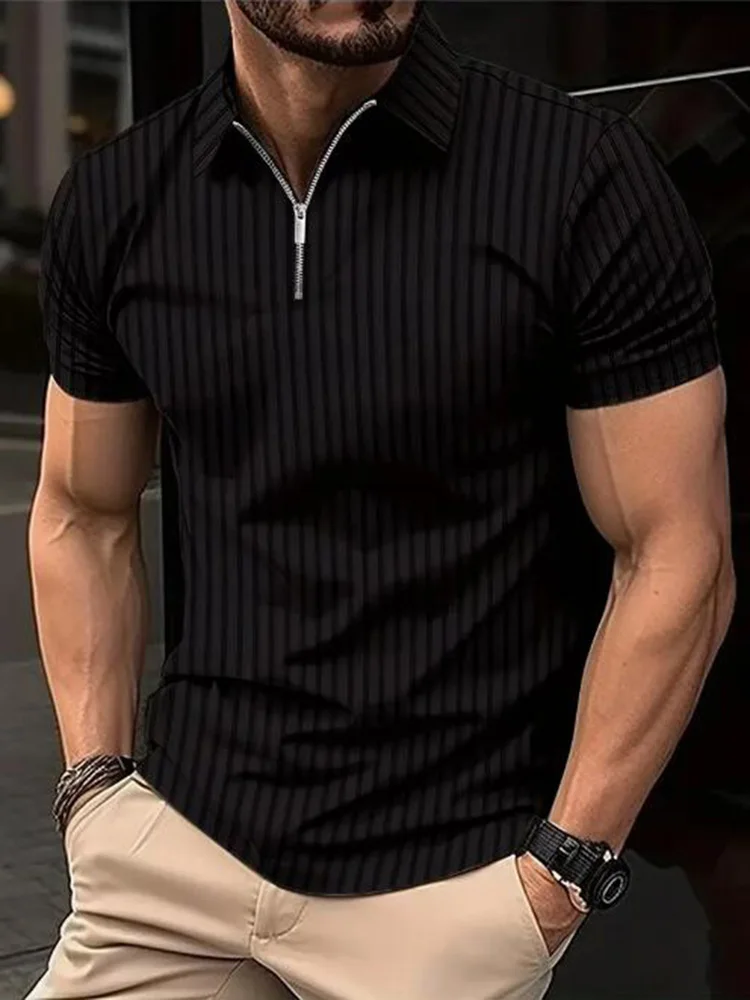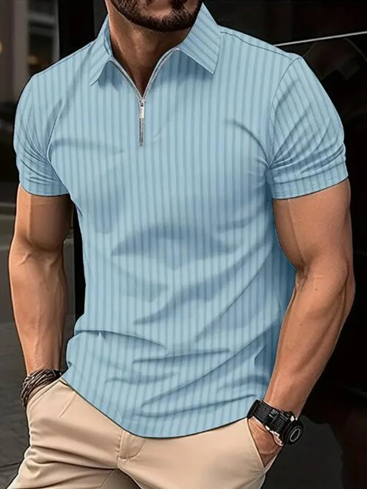 Verão masculino listra moda manga curta leve negócios casual camisa polo meio zip sólido elástico escritório manga curta camiseta